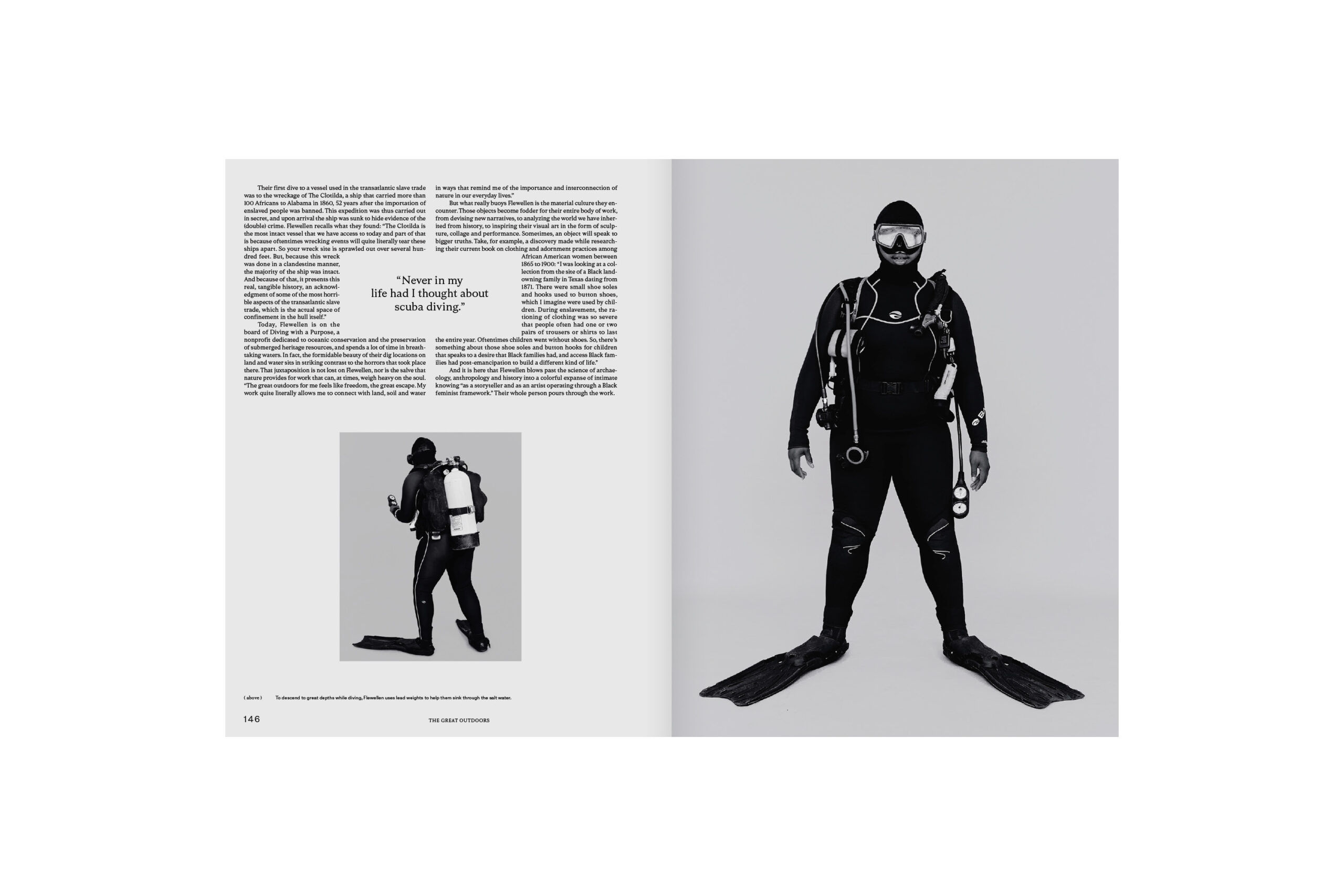 Every human engagement with nature will leave its mark. In The Great Outdoors Issue, we meet the people thinking about how to mediate these contact moments in fresh and nuanced ways. They include garden creator Piet Oudolf, Snow Peak fashion designer Lisa Yamai, explorer Ella Al-Shamahi and underwater archeologist Ayana Omilade Flewellen. Plus: Yoga with Adriene, writing with Zawe Ashton, a Parisian home tour with the founders of Galerie Chenel and a Romain Laprade fashion editorial that brings new flair to the notion of camouflage.