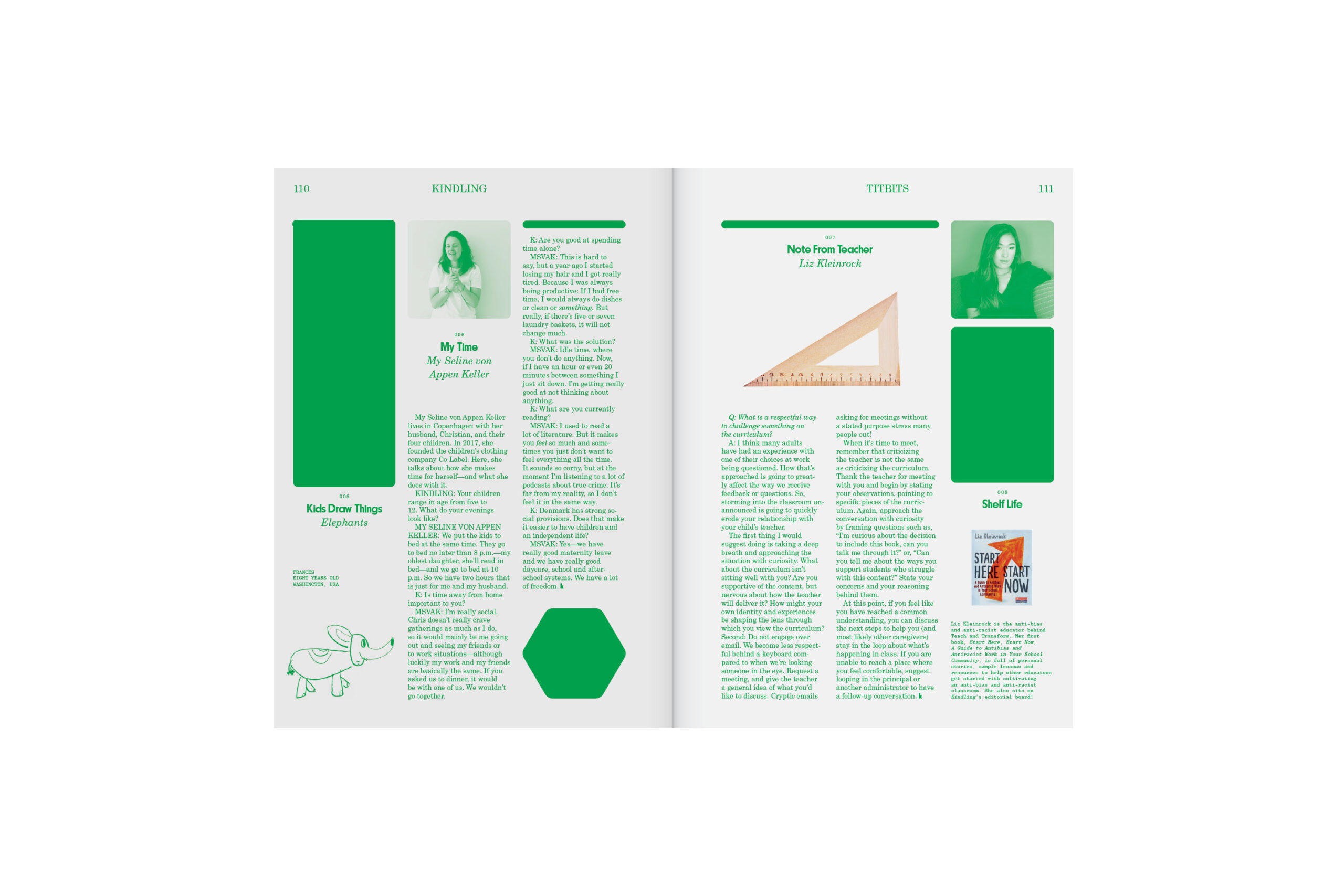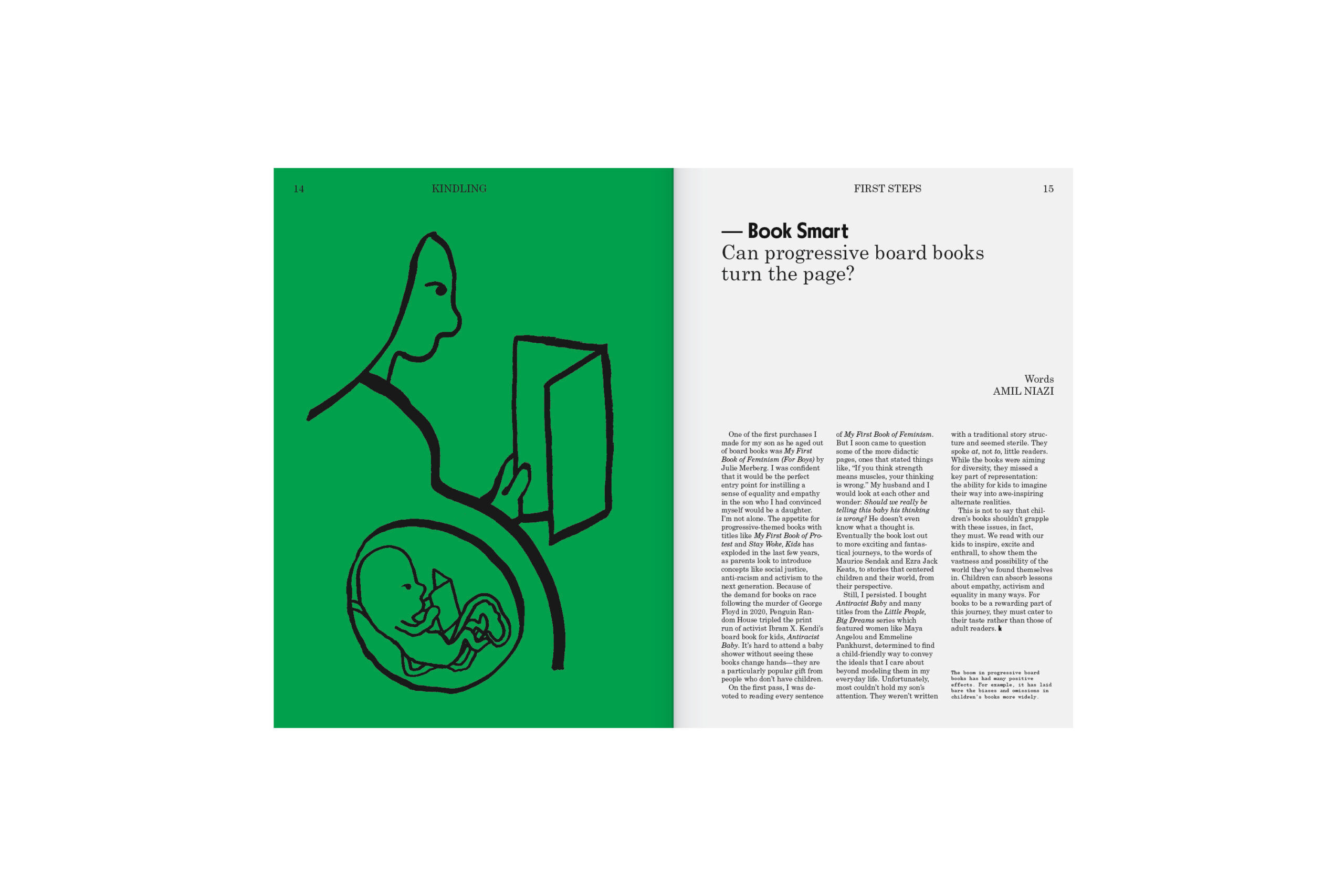 Interviews, features and imaginary friends: Issue Three of Kindling is on sale now! In THE IMAGINATION ISSUE, we chart the joy, terror and philosophical quandaries that come with raising a child. There are features on digital play, childhood fears and the unwritten rules of children’s music, plus an interview with designer Cas Holman about why “good toys make good people.” Also inside the issue: Former California surgeon general Nadine Burke Harris on childhood traumas and what can be done to mitigate them, Christine Sun Kim on art and motherhood, and your questions answered: Is Mean Girls’ Mrs. George a cool mom, a regular mom, or actually a really good mom? Why do kids love garbage trucks? How can I get my child to realize I’m a person too?