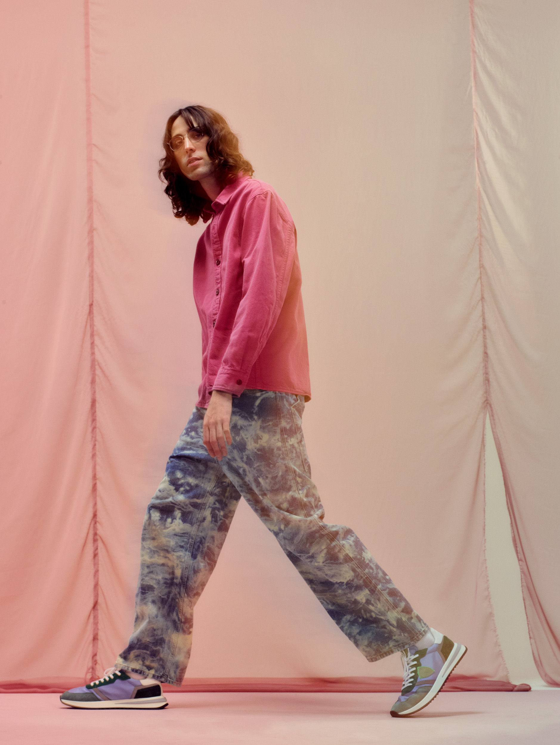 He wears a shirt by EDWIN, trousers by ECKHAUS LATTA and shoes by PHILIPPE MODEL.