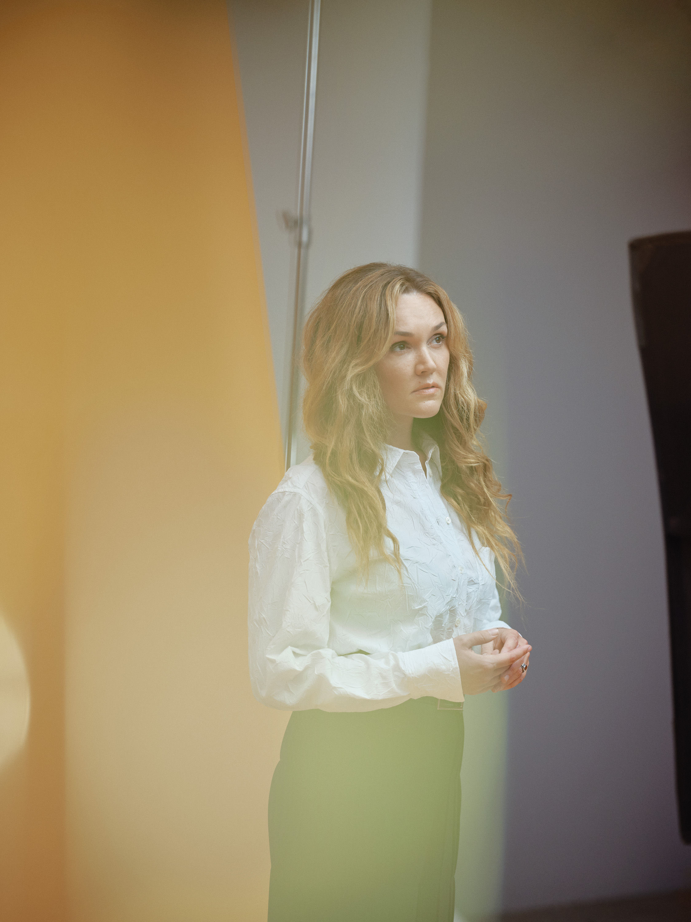 Fox wears a shirt by Sies Marjan, trousers by COS and a vintage Yves Saint Laurent belt.