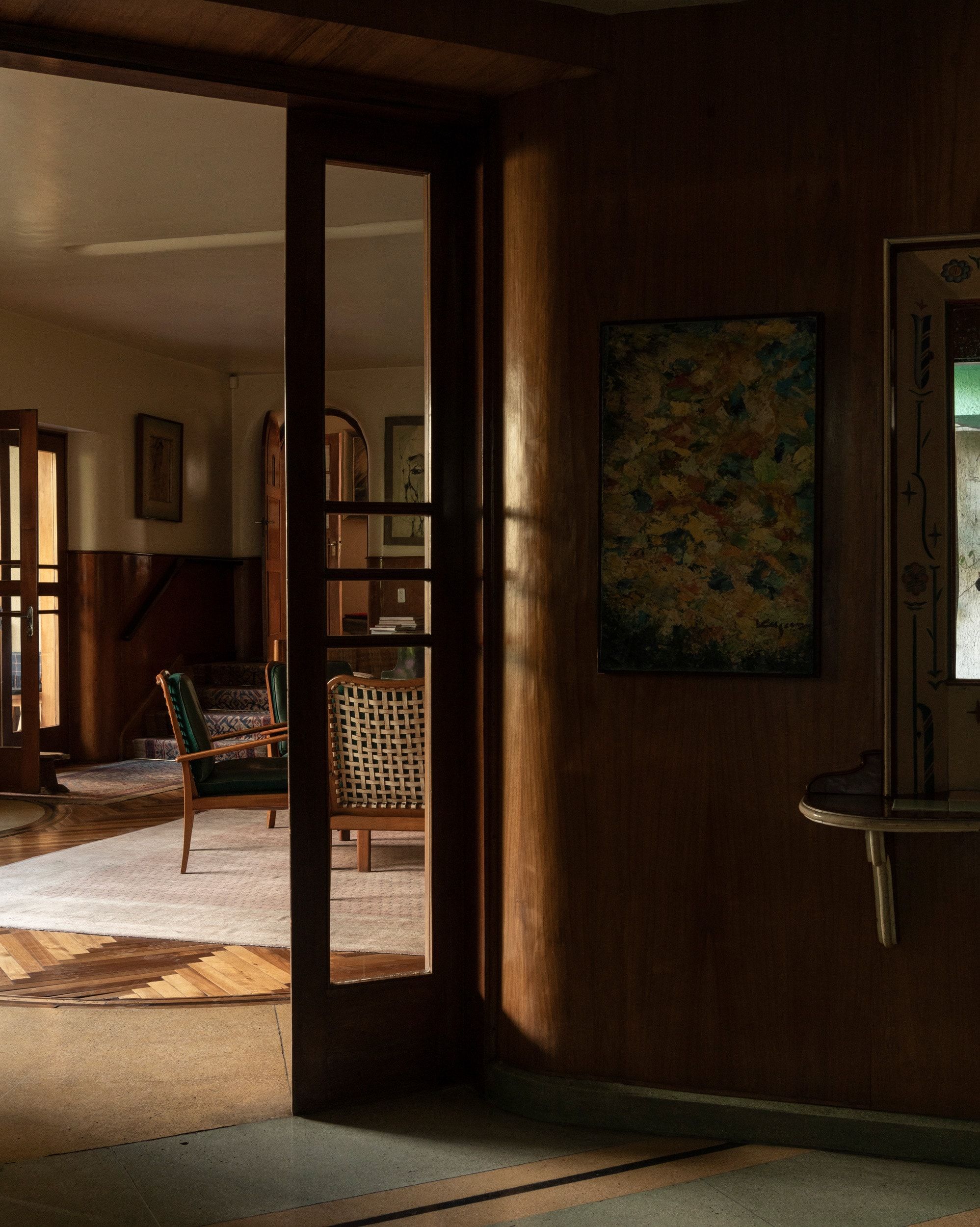 The residents of Alto Aragon, a drab 16-story apartment building on the Avenida 12 de Octubre in Quito, look down onto the roofs and gardens of one of the finest modernist houses in Ecuador. Seen from the busy six-lane road, the flat cornice of the house is just visible above a high garden wall that curves down a side road, leading to two doorways: one sized for a car, the other, at a more human scale, opening onto lush greenery.