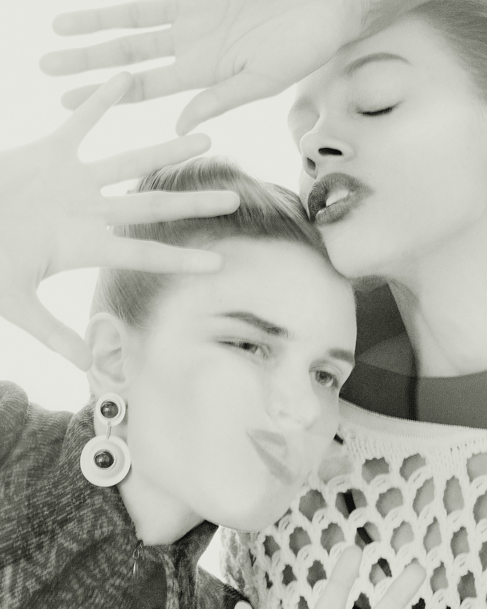 Madison wears a top by Beaufille and earrings from Carole Tanenbaum Vintage Collection. Samara wears a sweater and tank top by 3.1 Phillip Lim.