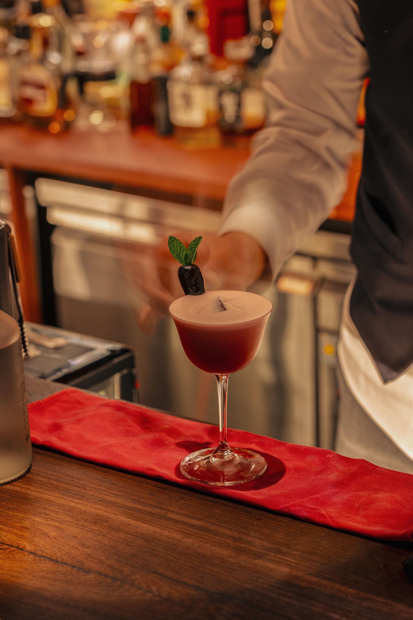 The entrance to speakeasy bar SookHee is hidden behind a secret door on the fourth floor of a nondescript building in the middle of busy Myeongdong—a setting that makes a striking contrast with the opulent decoration inside. Drawing inspiration from the Geunjeongjeon Hall at the Gyeongbokgung Palace, the bar has been decorated in traditional Korean style: wooden beams embellished with colorful dancheong paintings, munsal latticework, mother-of-pearl panels and antique cabinets. The cocktails showcase seasonal fruits and local flavors like jujube and scorched rice, and there is a small food menu for snacking. (RR)