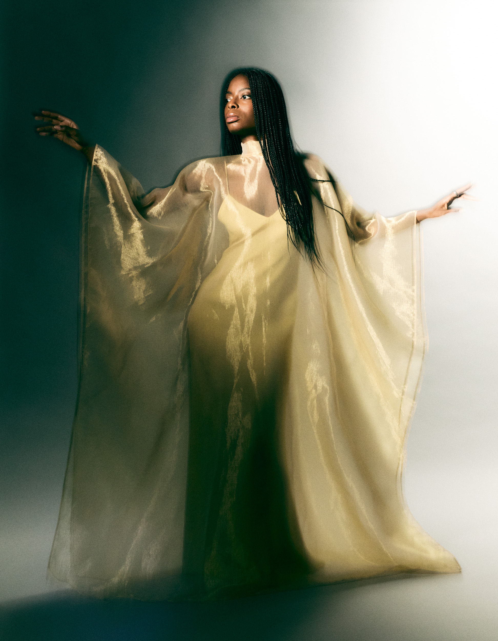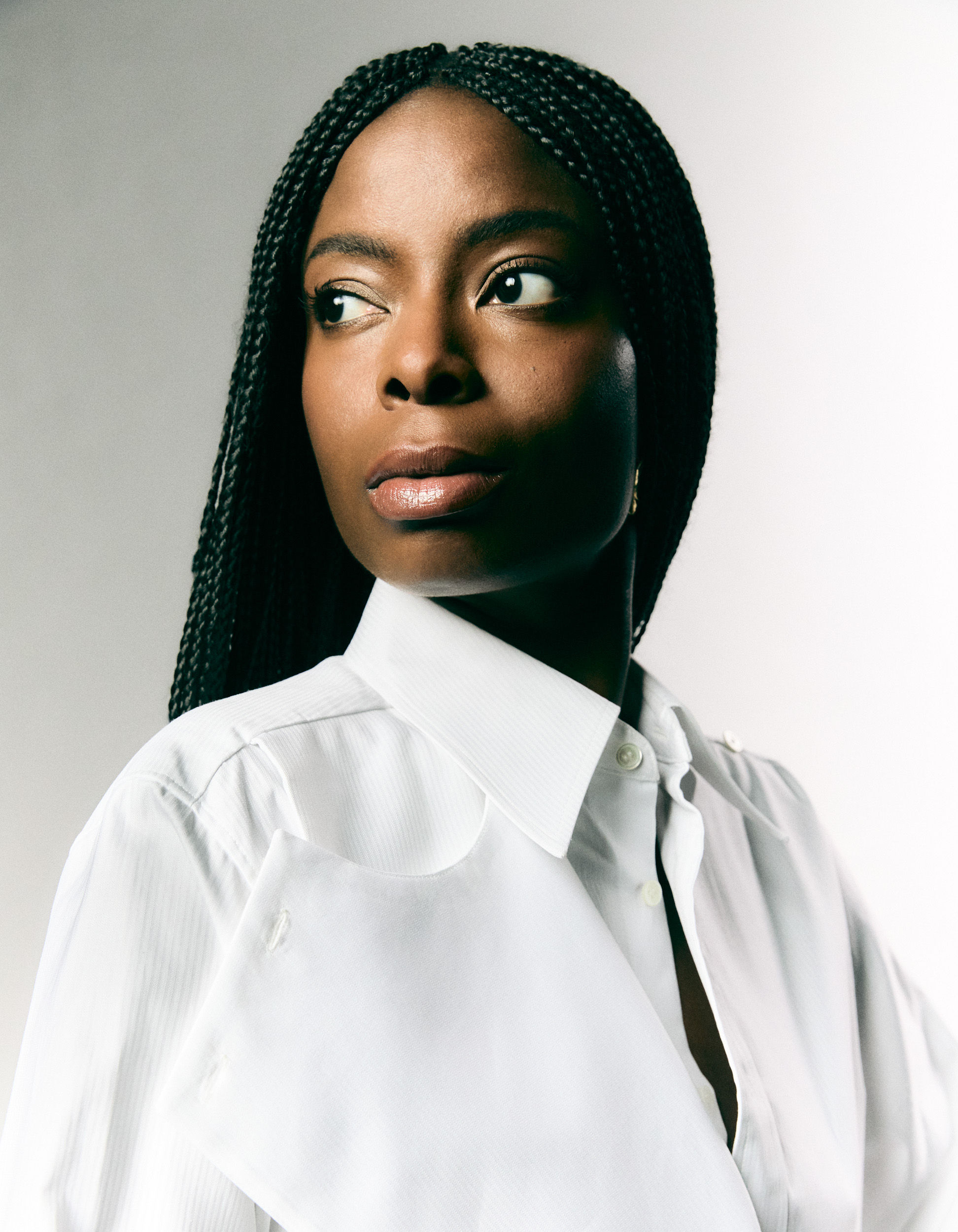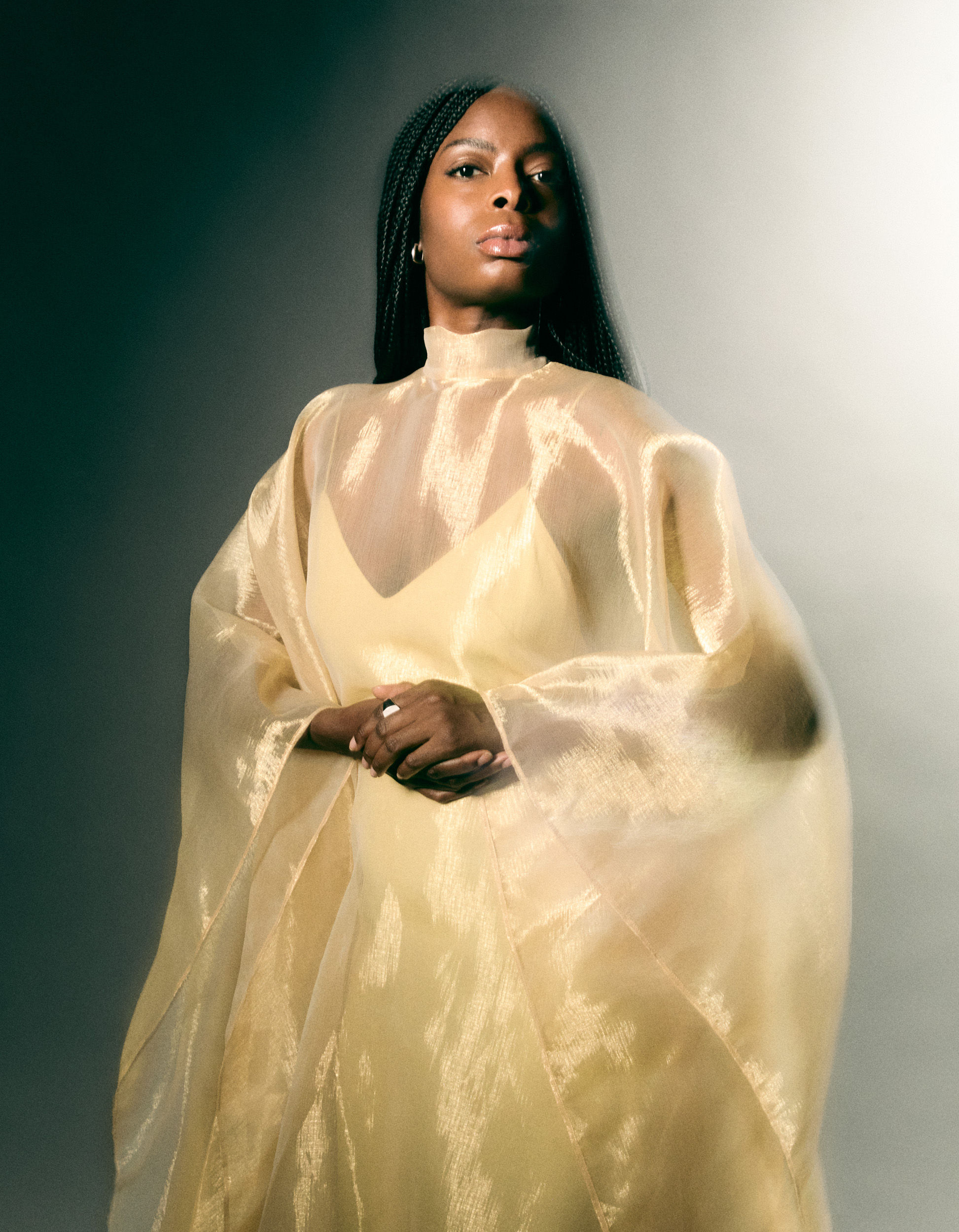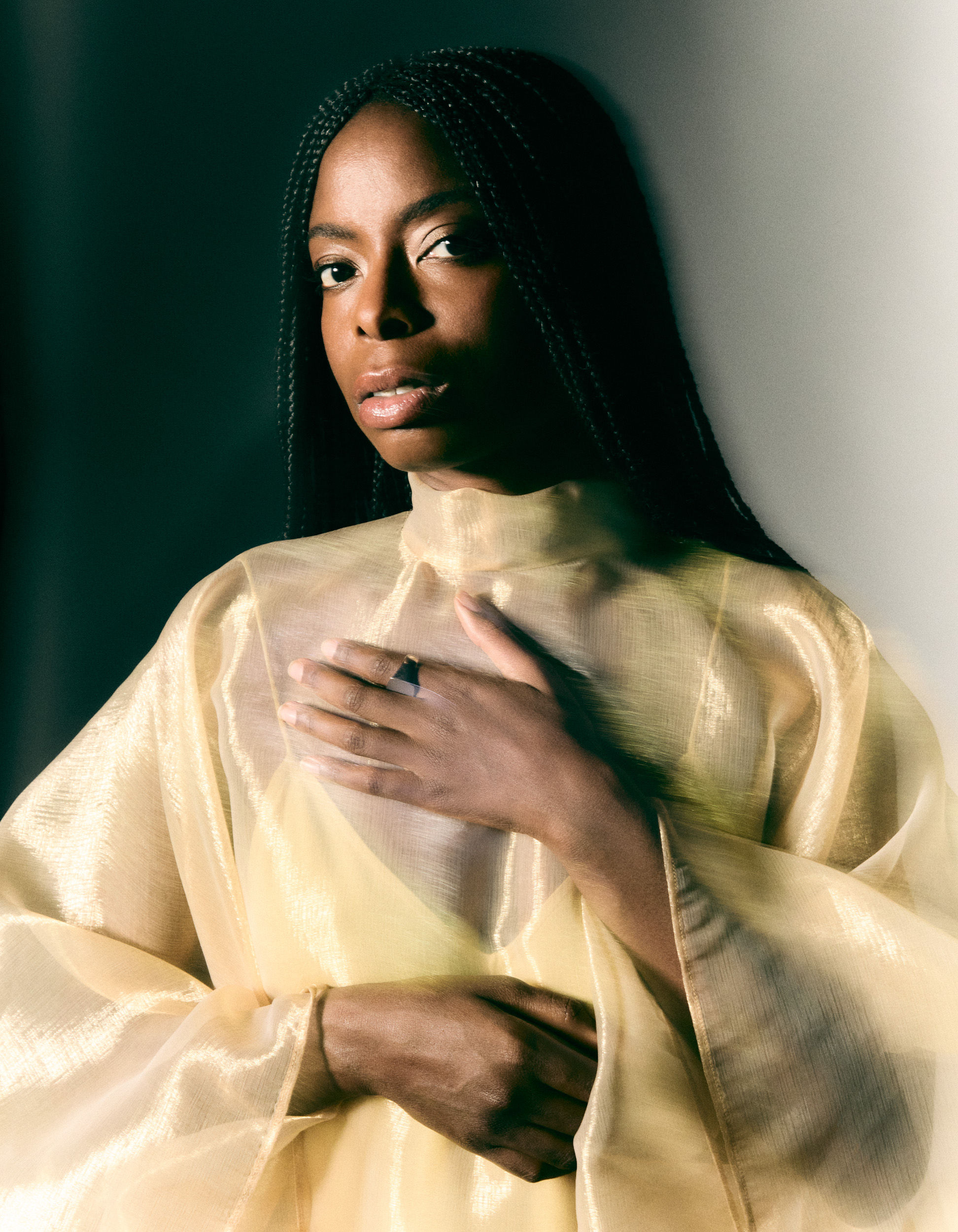 Uwagba wears a dress by TALLER MARMO and a ring by TOM WOOD.