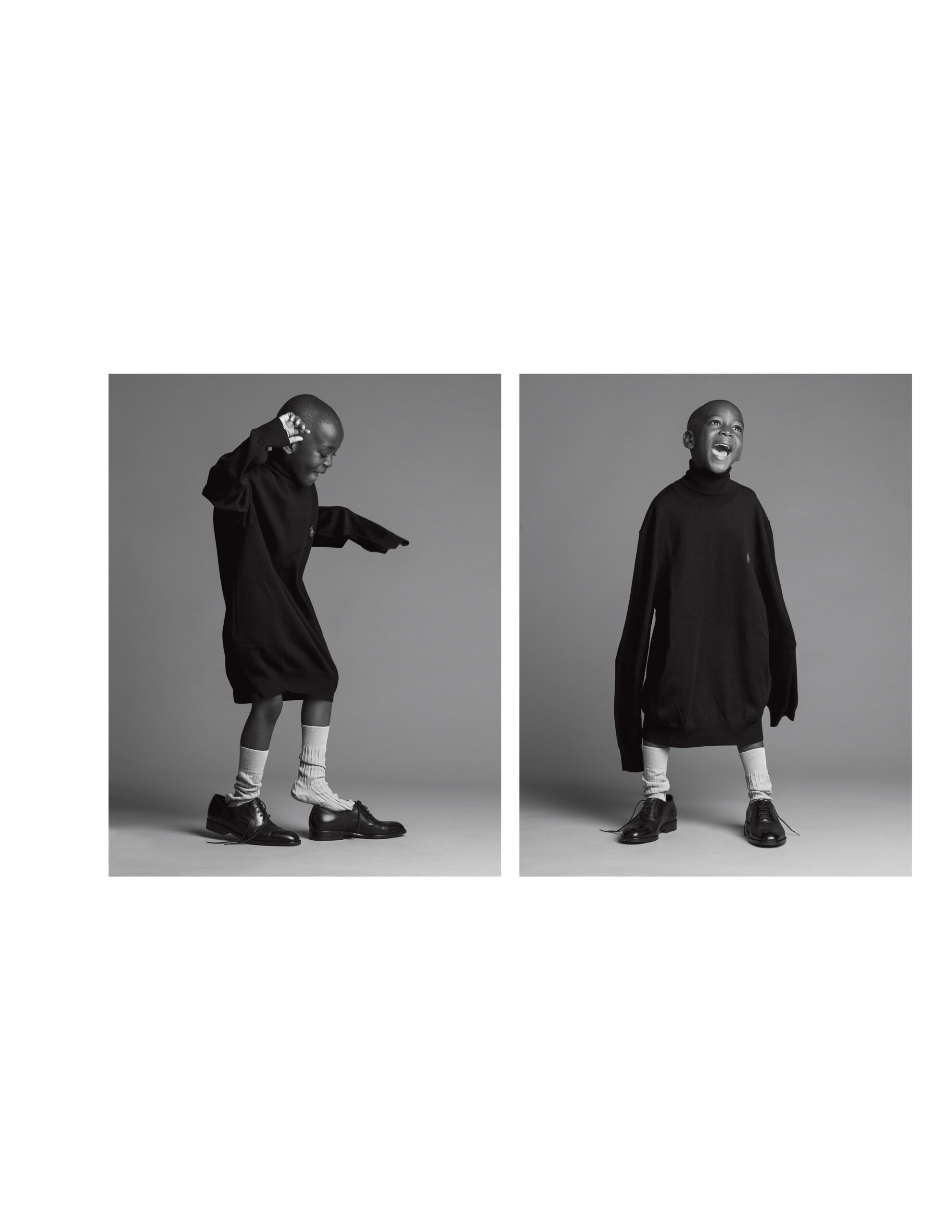 Oliver wears a turtleneck by Ralph Lauren, socks by Falke and shoes by J.M. Weston.